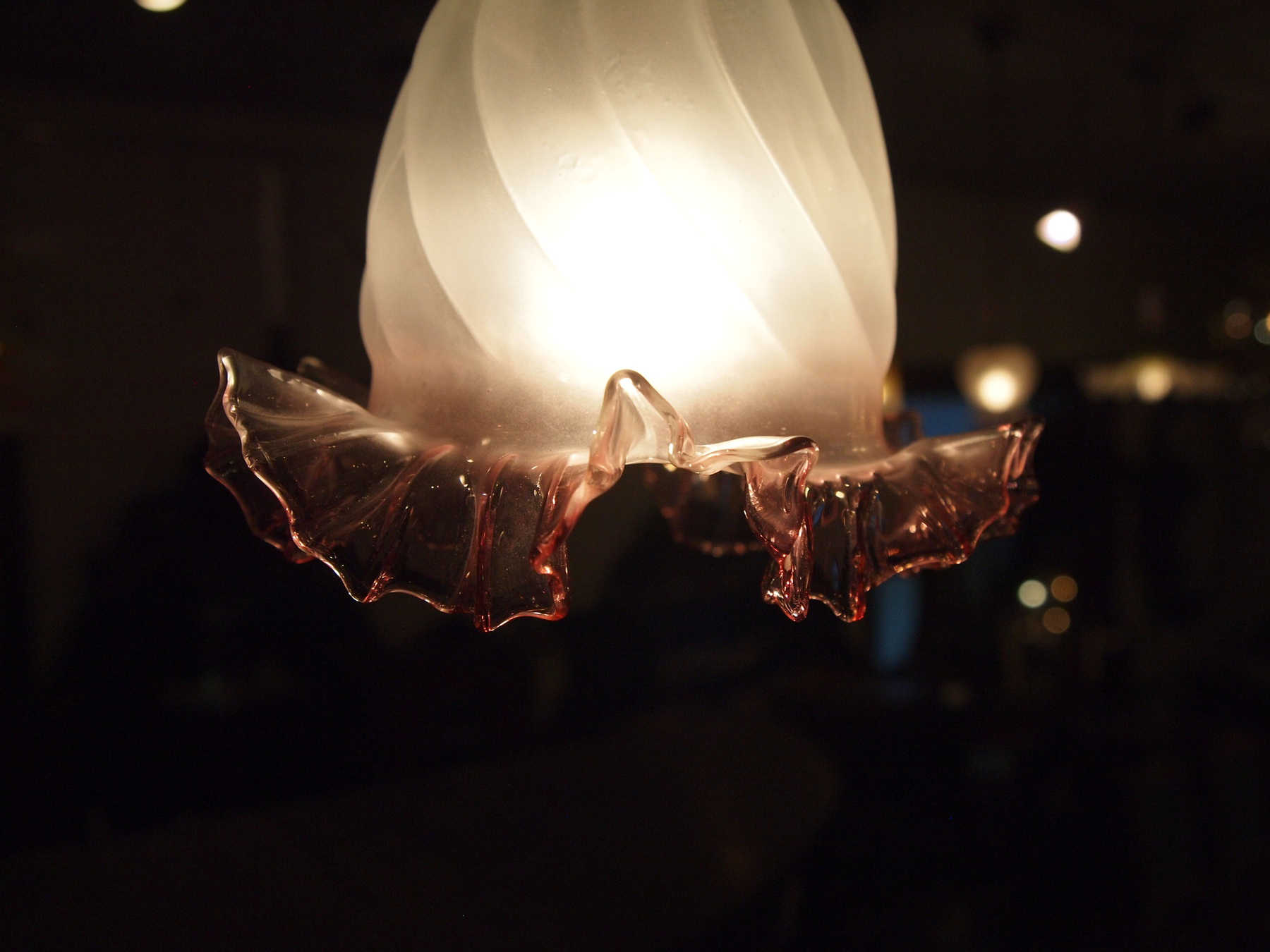 淡いピンクのドレープが特徴的な、柔らかい光を透過するガラスシェイドです。