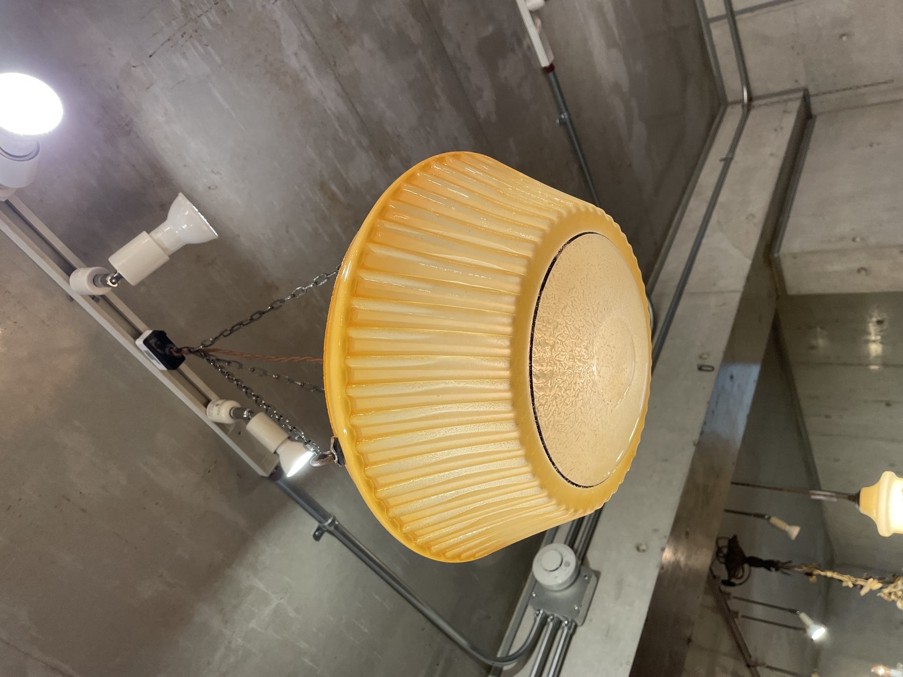温かい色味に発色する不透明ガラスで作られたハンギングシェイドです。 1950年代 英国製 ガラス H620(チェーン含む) φ340 電球 B22 品番:0902500020246 ¥45,000 (税込)