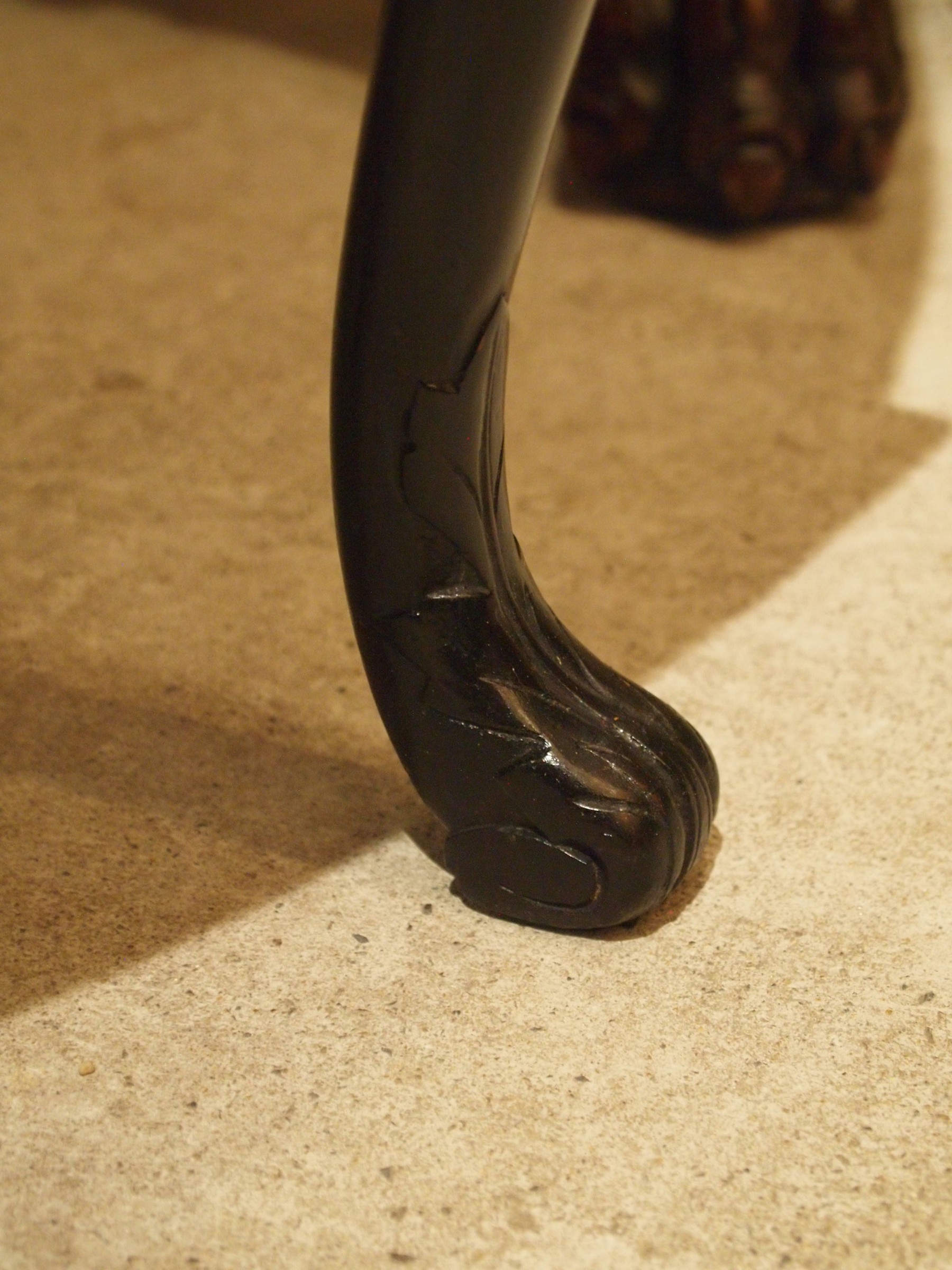 全体に木目の美しいローズウッドが使われ、グリーンマンやドルフィンをモチーフとした象嵌が施されたミラーバックキャビネットです。