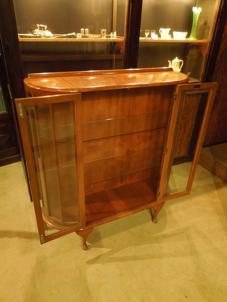 前面及び側面、棚板とガラスが使われておりますので飾るものを引き立たせる家具です。