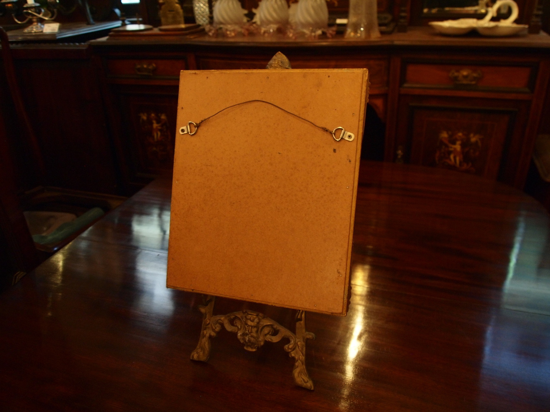 プリント生地が収められた雰囲気のある額です。