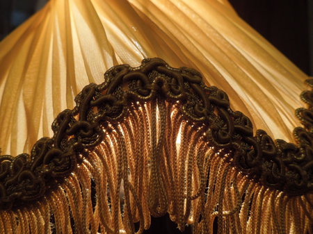 ドレープの間から透ける、柔らかい光が美しい卓上ランプです。