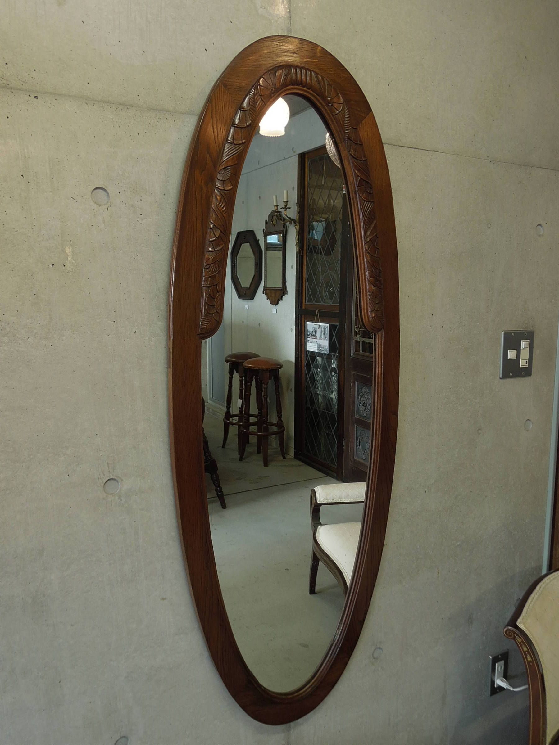 アールデコのオークミラーです。 高さがありますので、姿見としてお使い頂けます。