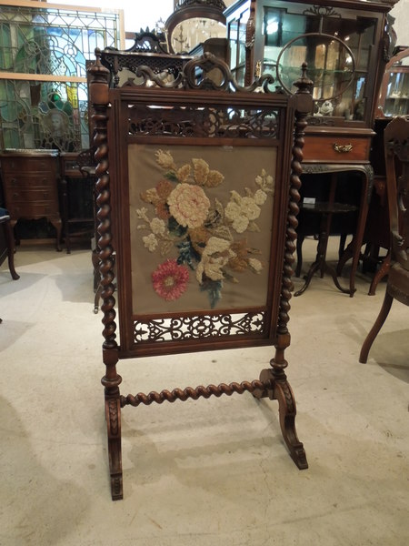 全体に施された繊細な彫刻が目を惹く、シルエットの美しいファイヤースクリーンです。