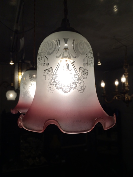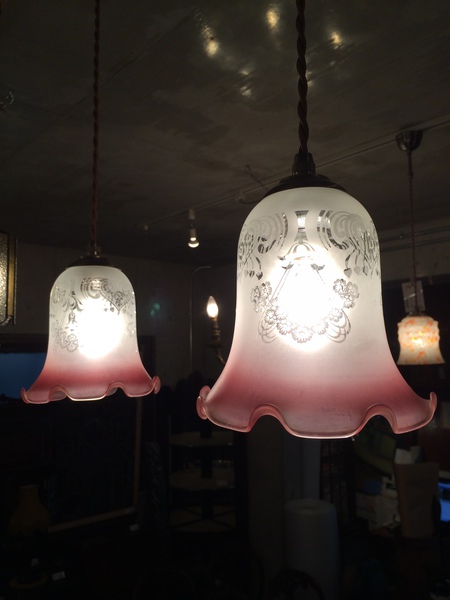淡いピンクのドレープが美しいペンダントランプシェイドです。