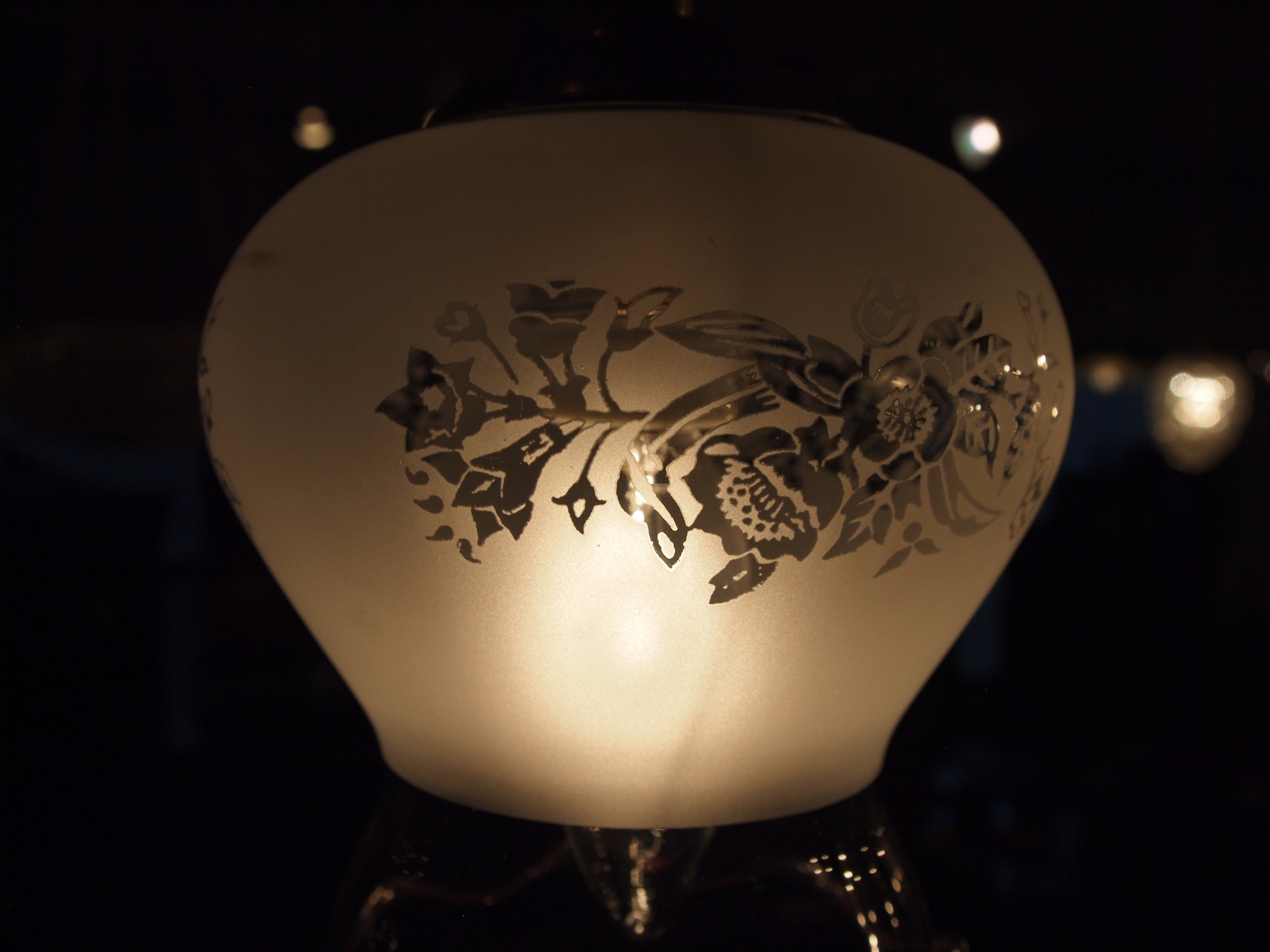 淡いピンク掛かったガラスにエッチングが施されたランプシェイドです。