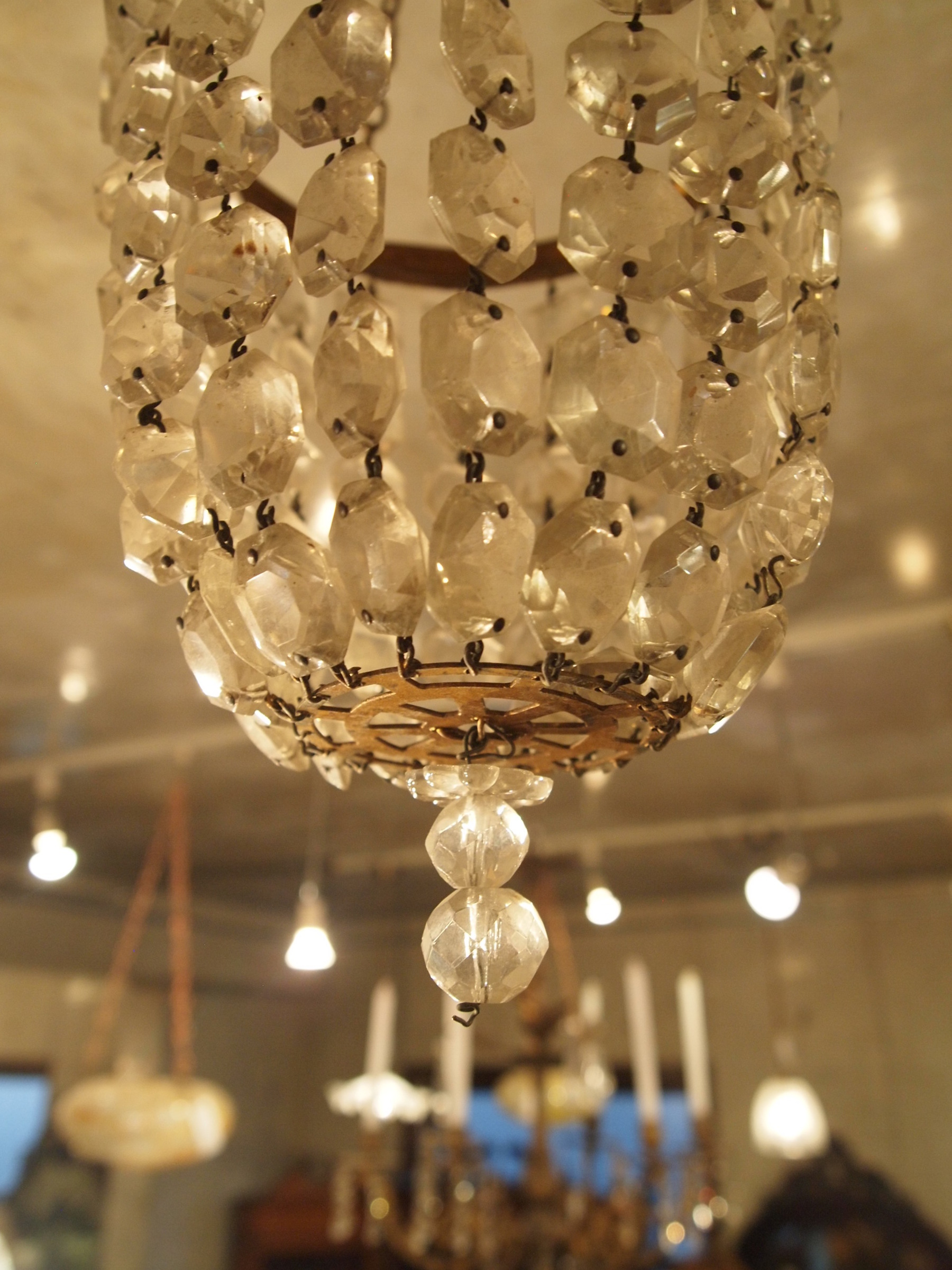 カット研磨された美しいガラスが連なる、小さなシャンデリアです。