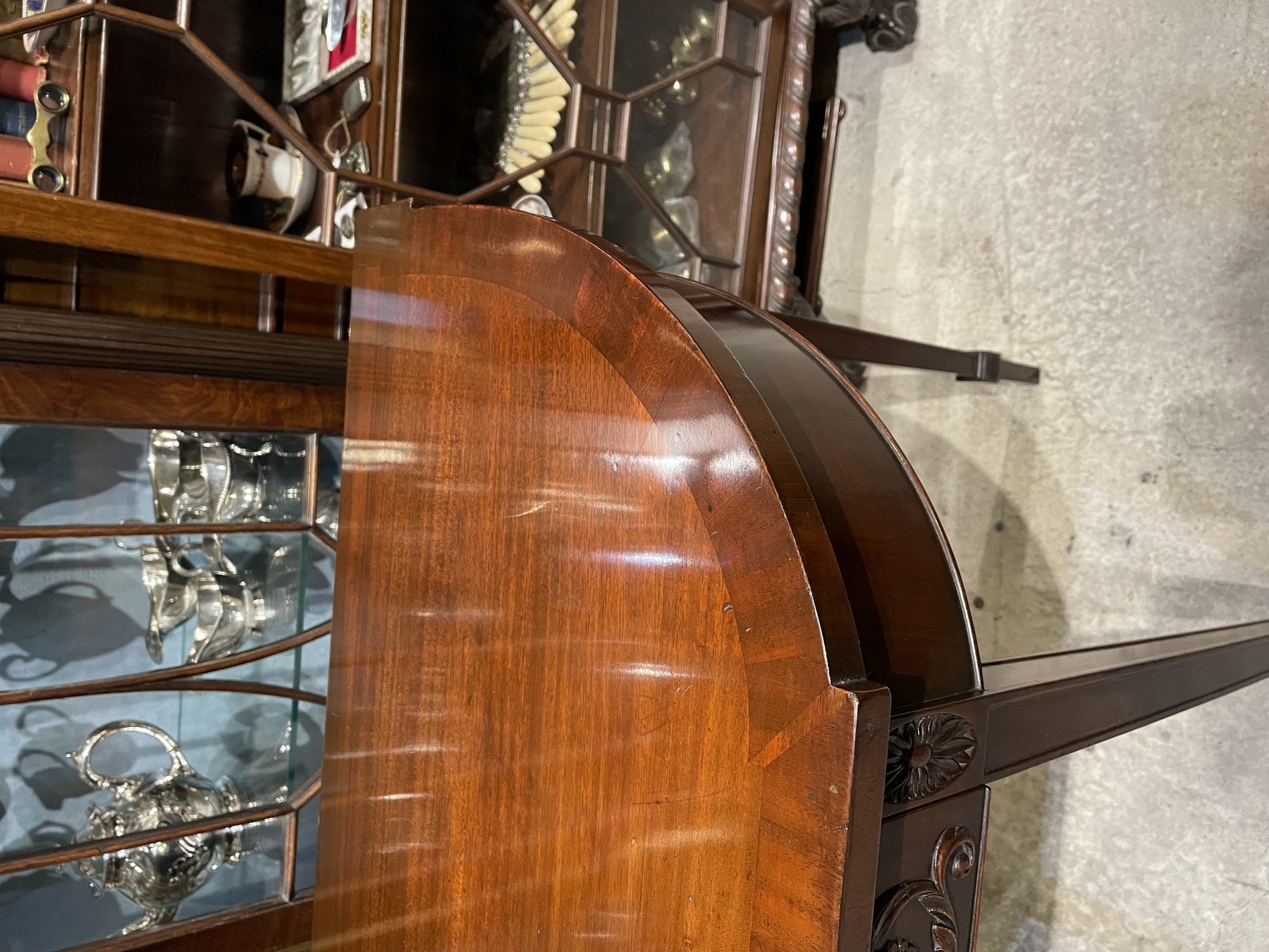 シンボリックな彫刻と長く伸びたテーパードレッグが美しいアダム様式のテーブルです。