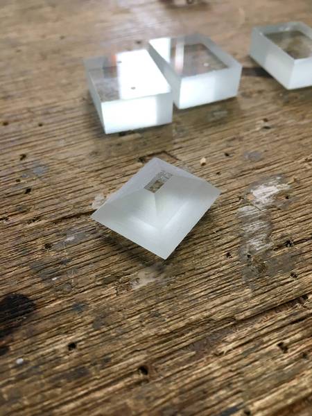 厚みを出す為、5mm厚のガラスを2枚重ねて接着し、元になるガラスブロックを作ります。