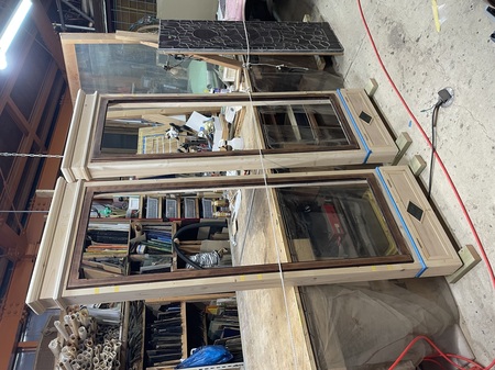 先ずは、ステンドグラス本体のメンテナンスと同時に、マホガニーで作られた木枠の剥離作業です。